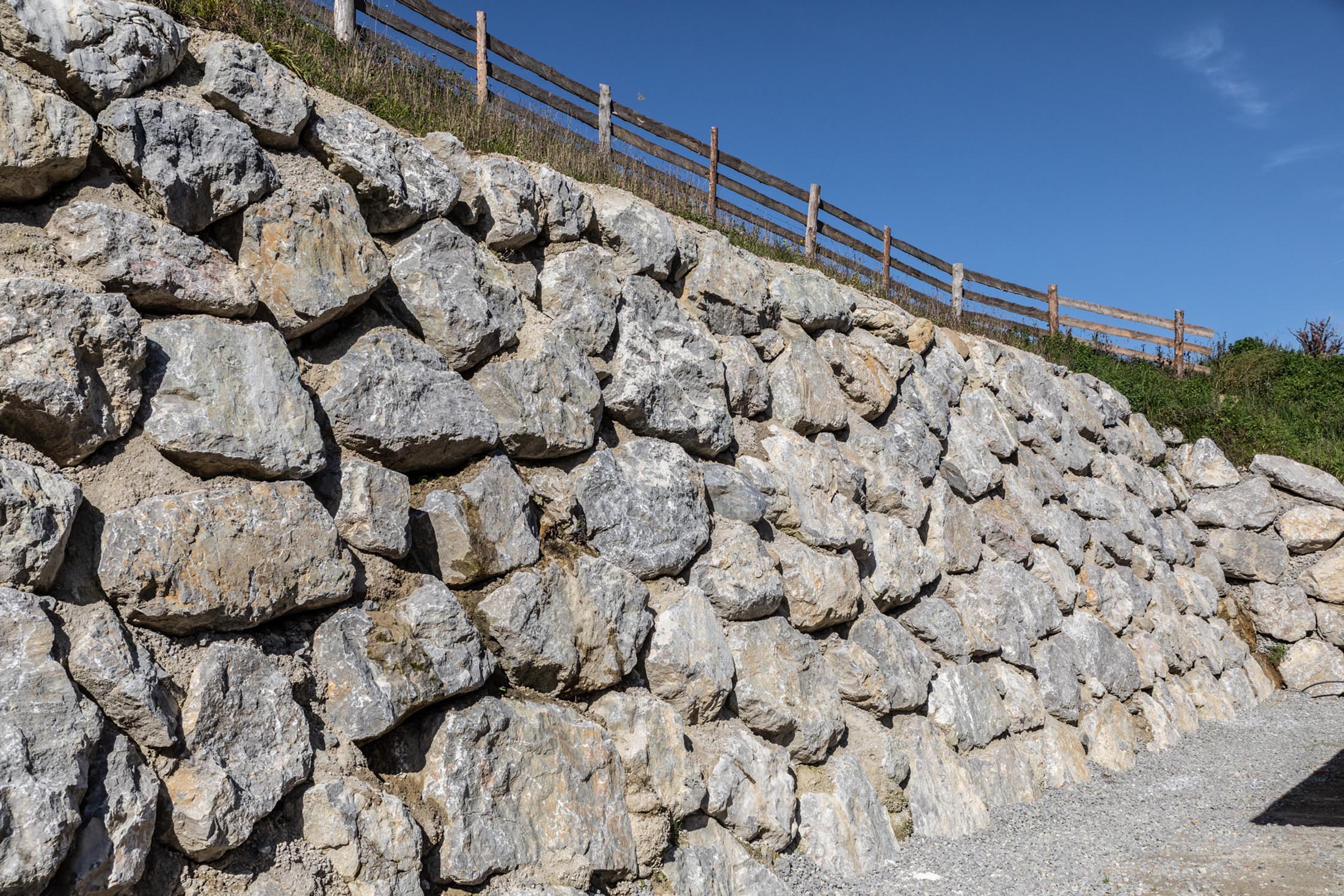 Hänge oder Uferbereiche an Bächen und Flüssen müssen zum Teil gesichert werden, um gefährliche Rutschungen oder Setzungen zu vermeiden. Dank professioneller Steinschlichtungen wird gefährliches Terrain wieder befahr- bzw. begehbar. Wir führen Steinschlichtungen in jedem Gelände und sorgen auch für die Anlieferung der Steine. Ob Uferschutz, Böschungssicherung, Hangsicherung oder eine Natursteinmauer – zählen Sie auf die Kompetenz von Bachler Erdbau!